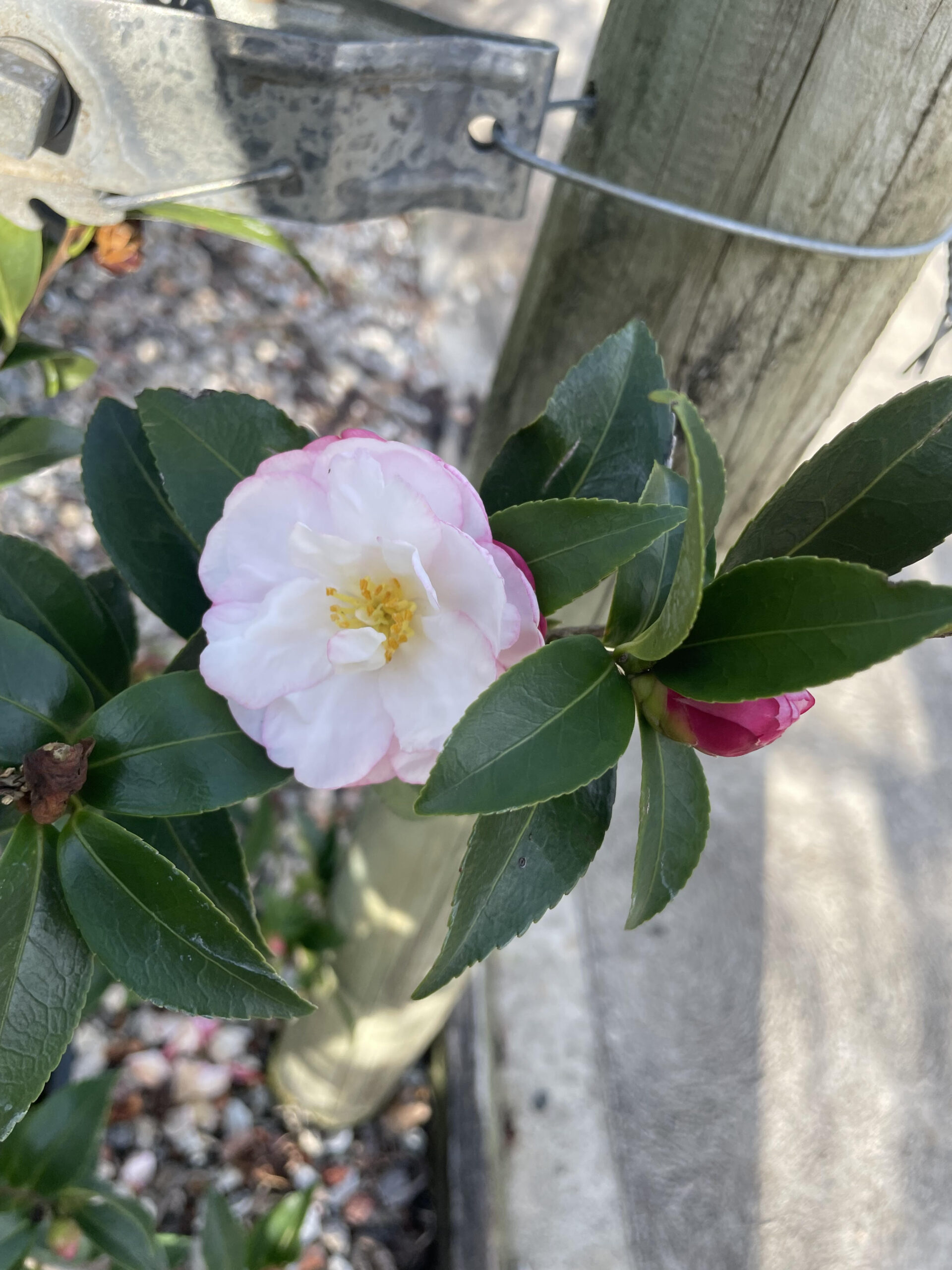 - Flowers: Features deep rosy-pink buds that open to small-to-medium-sized, semi-double white flowers with a distinct pink blush on the reverse side of the petals.