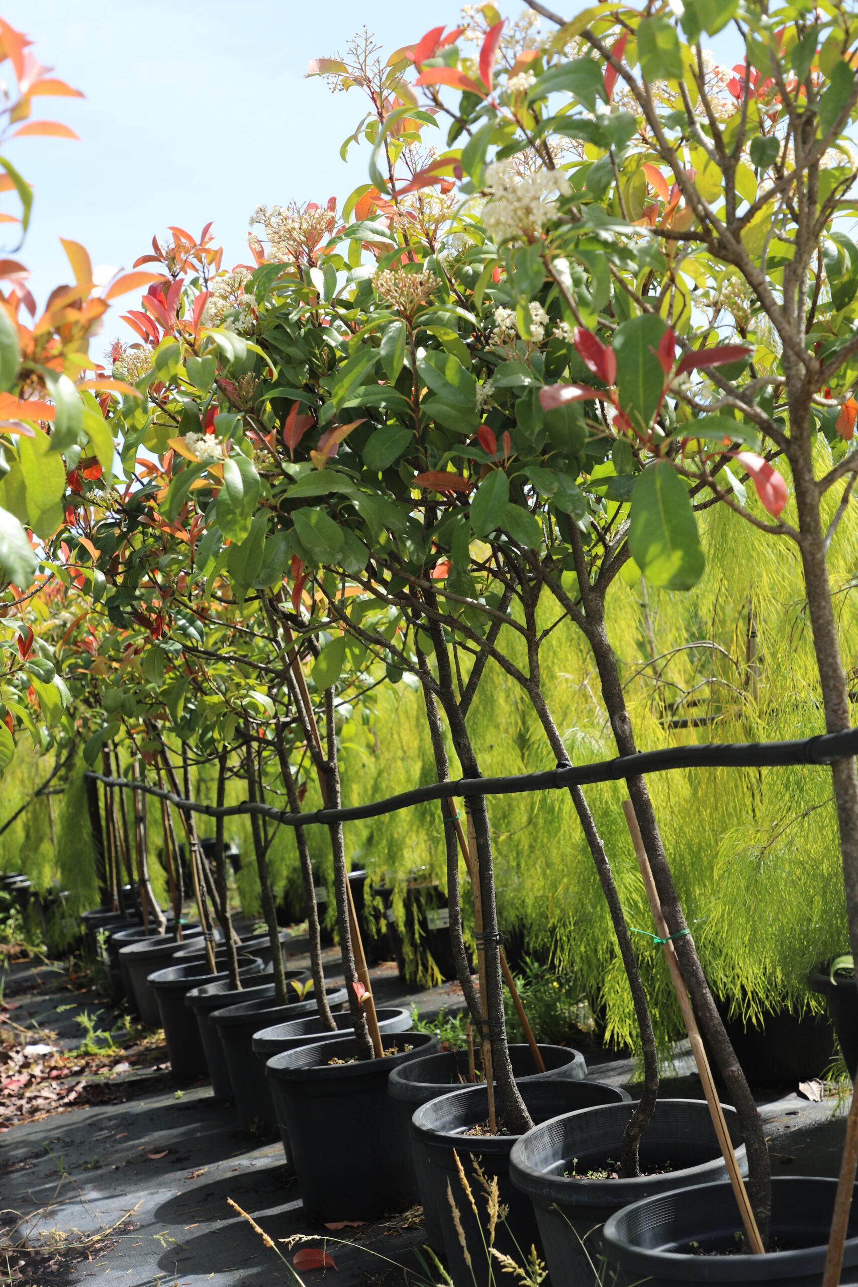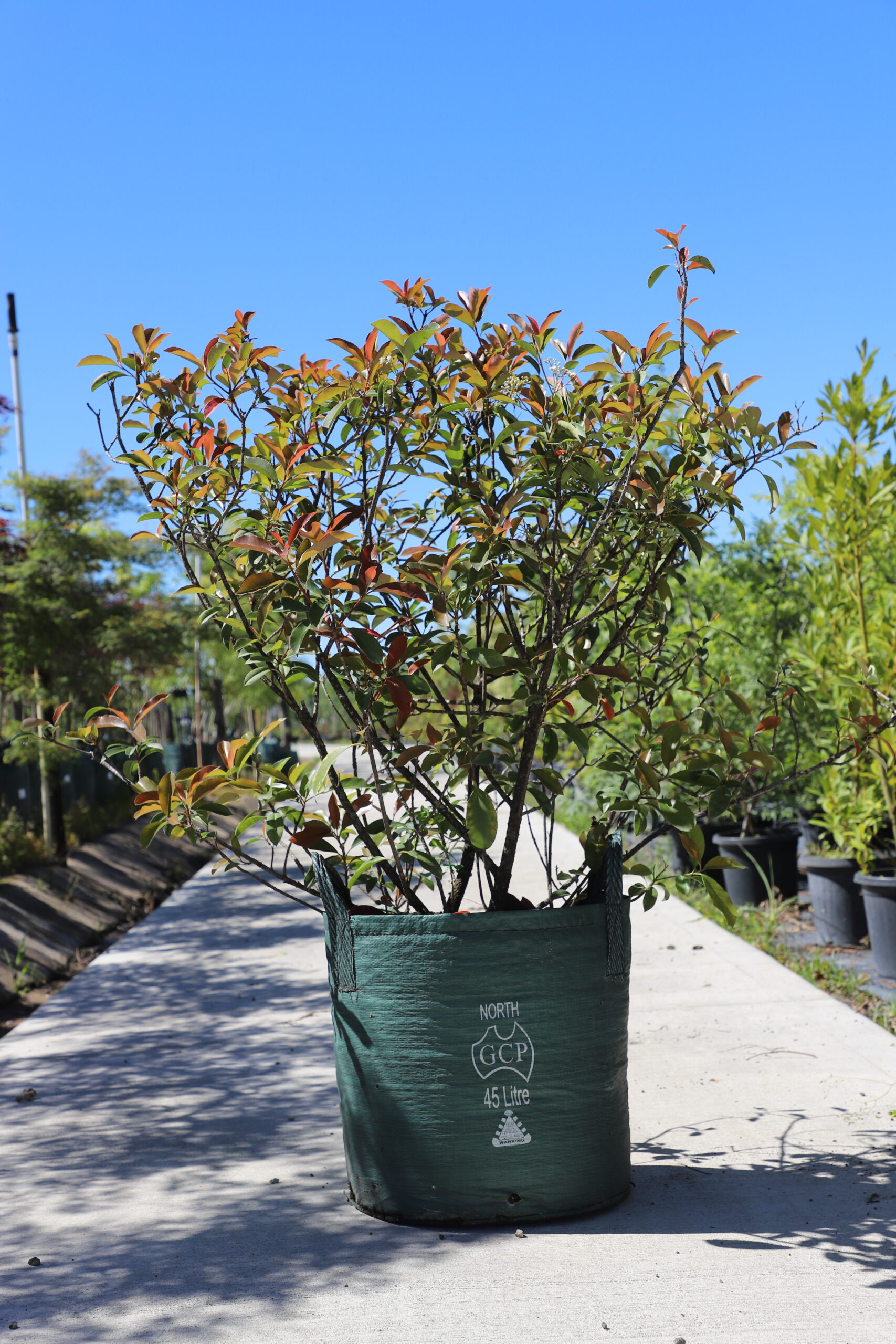 - Foliage: New growth in spring is a bright red-bronze colour, with mature leaves being dark, leathery green.